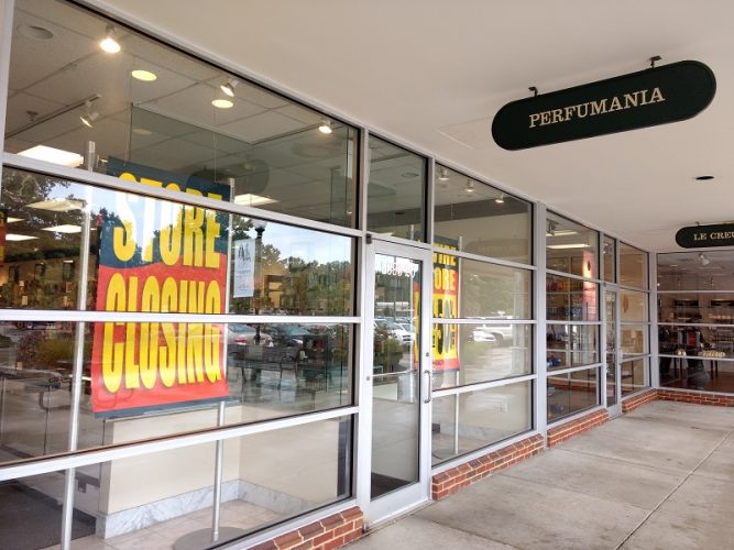As Perfumania prepares to close, the Williamsburg Premium Outlets store is advertising clearance sales with deals between 30 and 50 percent off.