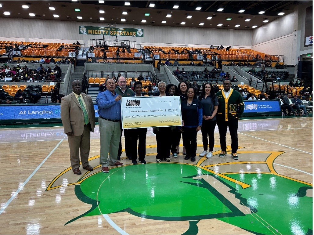 Langley presented a check in the presence of NSU President Javaune Adams-Gaston after the senior night ceremonies for the women’s basketball team and cheerleaders on March 8, signifying a five-year commitment, it said.