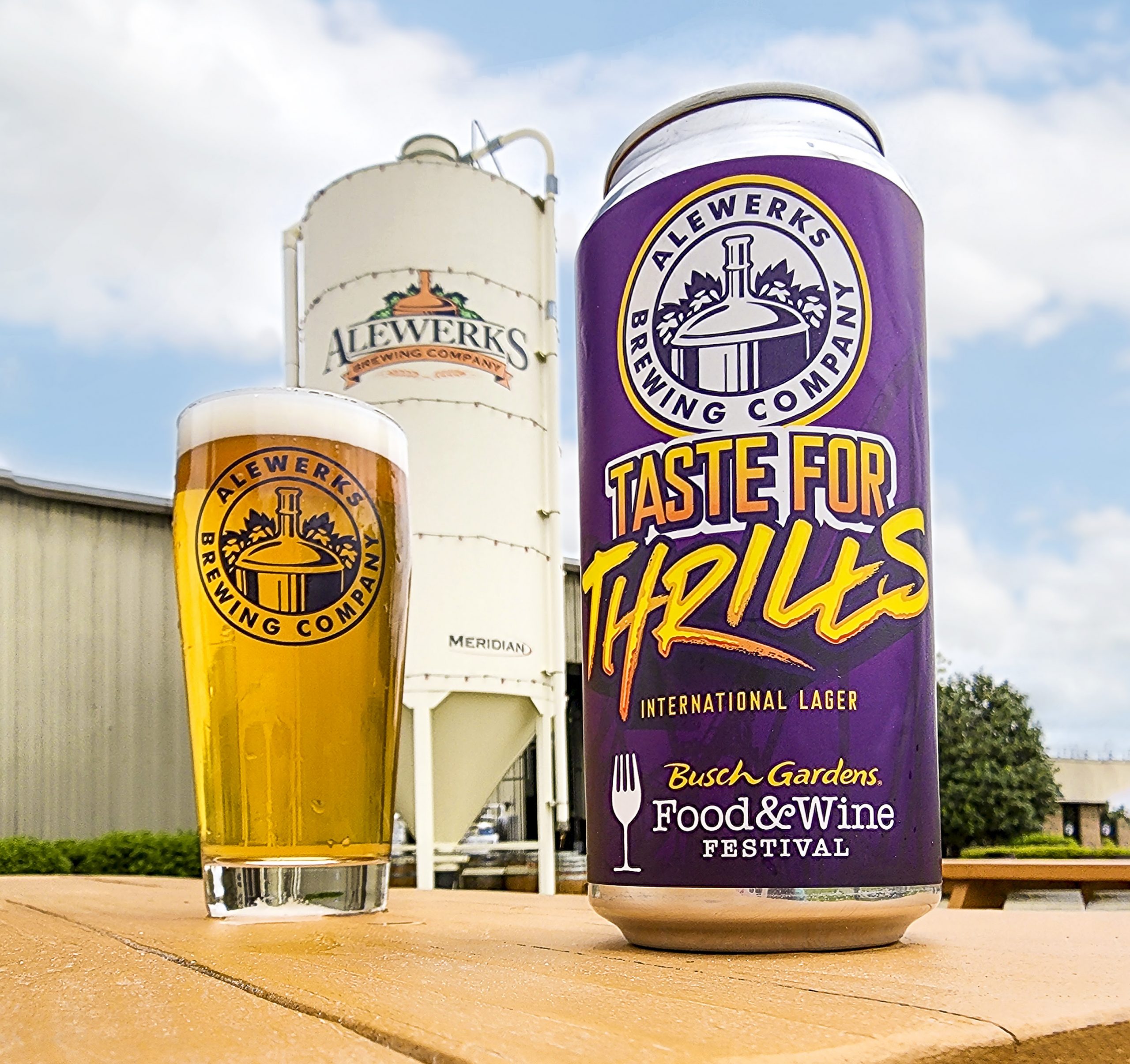 Alewerks Brewing Company announced a new beer — Taste for Thrills — a 5% International Lager brewed in collaboration with Busch Gardens in celebration of the 2024 Food & Wine Festival.
