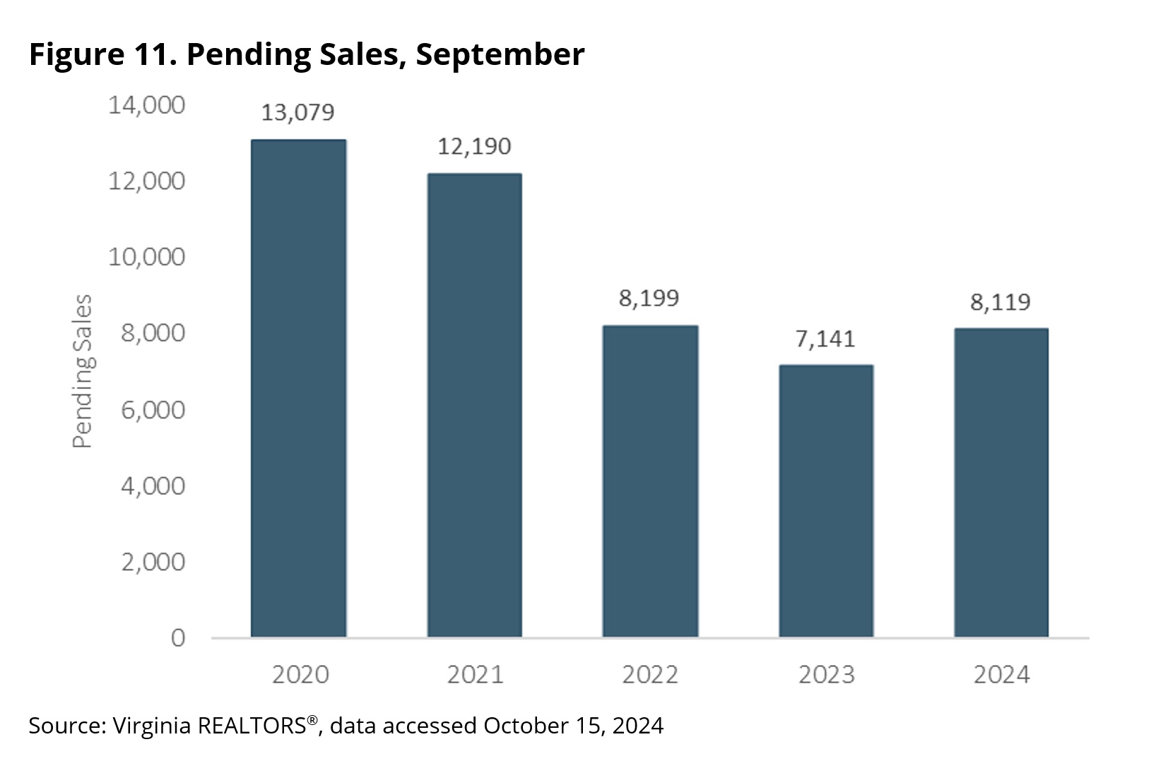 While closed sales remained flat, the largest trade association in Virginia said a significant increase in pending sales suggests more buyers are entering the market. It noted there were 8,119 homes that went under contract in Virginia in September, an influx of 978 pending sales from a year ago, a jump of nearly 14%.