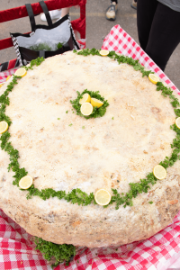 According to the bank, the crab cake was hand-crafted in collaboration with Richmond seafood market Shoreline, tipping the scales at over 400 pounds. Measured 37 inches in diameter and 9 inches tall, it debuted at The Diamond just before the Richmond Flying Squirrels game before first pitch. First bites served up after the first inning and shared with fans starting at the top of the second.