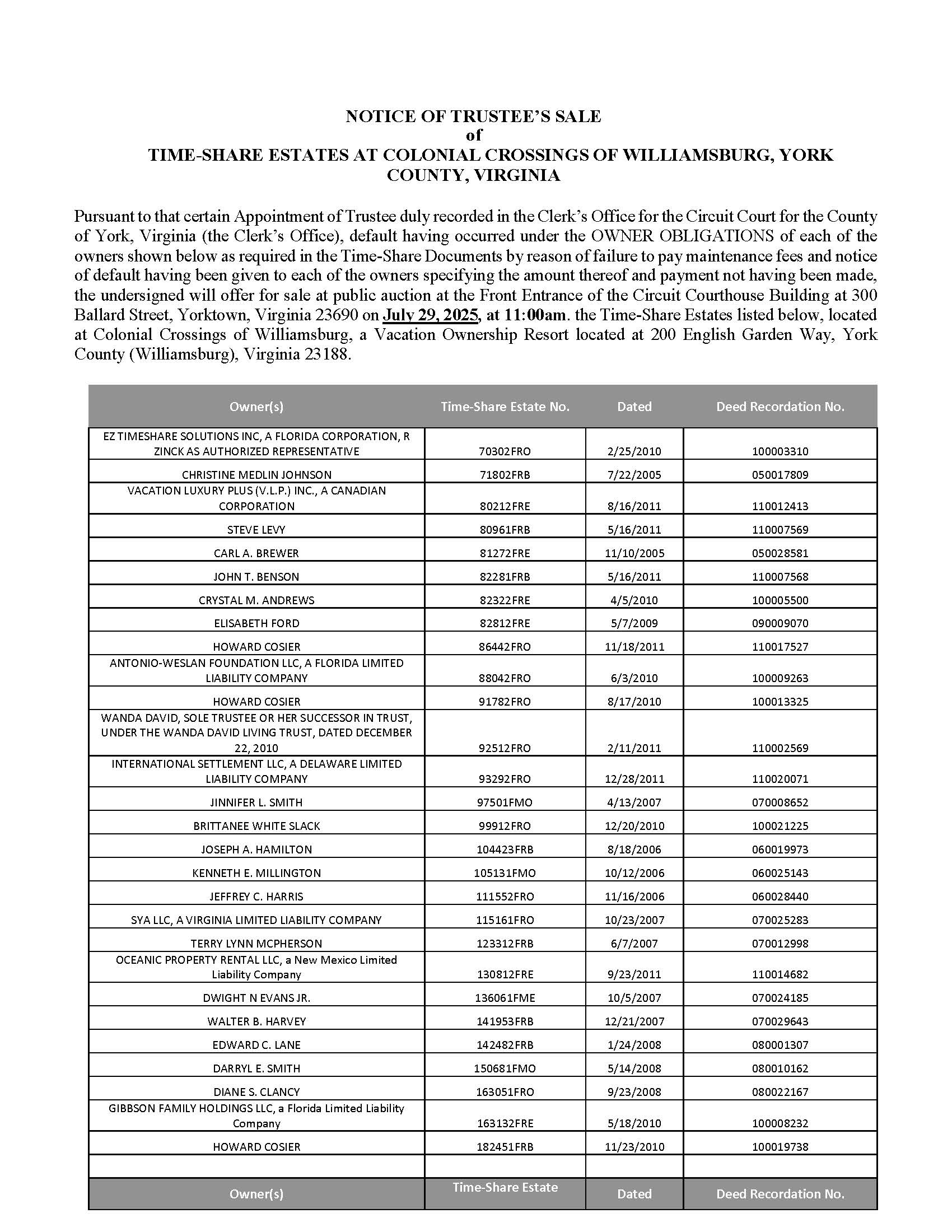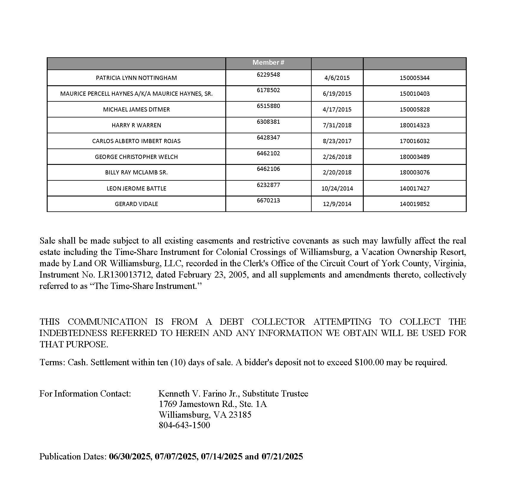 HomeBusinessPublic Notices Public Notices Public Notice: Notice of Sale By Chris Six June 30, 2025 0 FacebookTwitterPinterestWhatsApp The above represents paid content FacebookShare on XLinkedInWhatsAppEmailCopy Link This page is available to subscribers. Click here to sign in or get access. TagsPublic NoticeSponsored Content Share FacebookTwitterPinterestWhatsApp Previous articlePublic Notice: Order of PublicationNext articlePublic Notice: Order of Publication Chris Six Related Articles Public Notices Public Notice: Order of Publication SPONSORED CONTENT Public Notices Public Notice: Order of Publication SPONSORED CONTENT Public Notices Public Notice: Notice of Sale SPONSORED CONTENT MORE FROM AUTHOR Alerts Don’t Forget to Spring Forward — Daylight Saving Time Begins Sunday Latest News News Briefs for Feb. 10 Latest News Federal Bill Looks to Expand Responsible, Large-Scale Fish Farming in Virginia Support Local Journalism Enter Contests Register for Strictly Business Related Articles Public Notices Public Notice: Order of Publication SPONSORED CONTENT Public Notices Public Notice: Order of Publication SPONSORED CONTENT Public Notices Public Notice: Notice of Sale SPONSORED CONTENT MORE FROM AUTHOR Alerts Don’t Forget to Spring Forward — Daylight Saving Time Begins Sunday Latest News News Briefs for Feb. 10 Latest News Federal Bill Looks to Expand Responsible, Large-Scale Fish Farming in Virginia Submit An Event