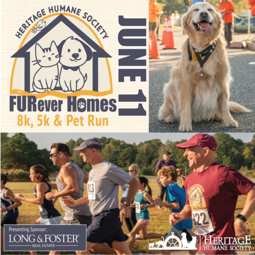 Led by Presenting Sponsor Long & Foster Real Estate, the Heritage Humane Society welcomes all ages and levels of runners and walkers – including leashed pets — to join in the race of finding forever homes for furry friends in need. All event proceeds will benefit homeless pets at the Heritage Humane Society.
