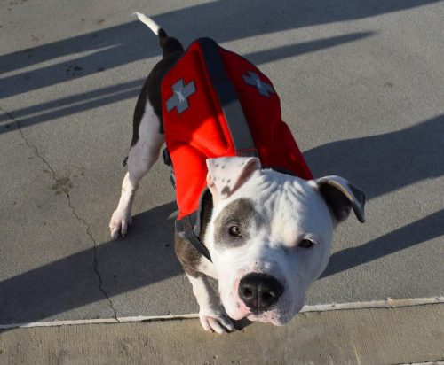 Adoptable dogs Mushu and Sky from the Heritage Humane Society enjoyed a pre-game of dog paddling fun just before Drool and the Pool opened to the public at 9 am. Sky was adopted this weekend, and Mushu is still available for adoption.