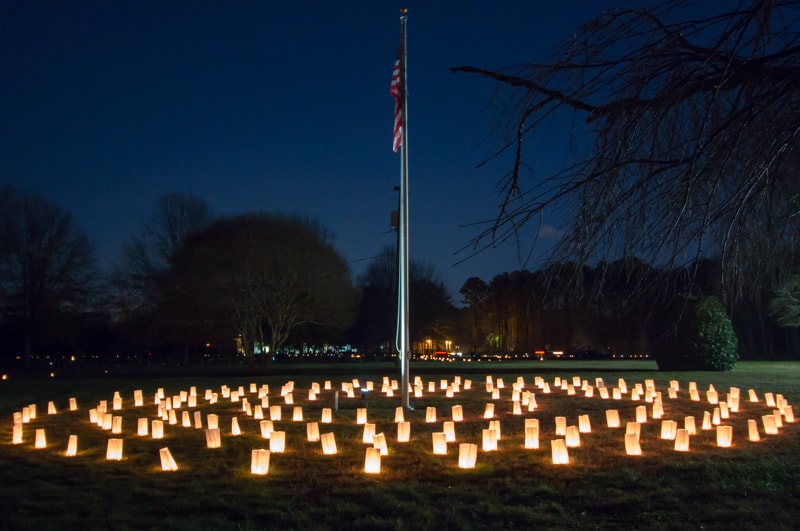 This FREE event can be experienced from the comfort of your own car. Enter the beautifully landscaped grounds for an approximate 1 mile drive through the park. Over 2,000 luminaries will border both sides of the park’s main loop for a gorgeous visual memorial.