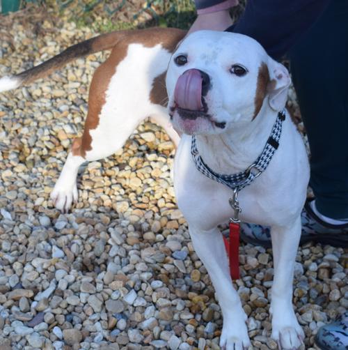 Meet Aztec. She is a four-year-old boxer mix who is full of sweetness and love. She has a spunky, playful side and can just as easily be extremely affectionate. She gives kisses at a million miles per hour – just about as fast as her body wiggles. Aztec has been making dog friends at The Heritage Humane Society during playgroups. She loves playing and running around with her furry buddies here. She is friendly and exuberant and is looking for an active family to include her in all their adventures.