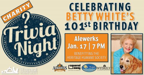 For those who love a good challenge for a great cause, they are invited to the Betty White trivia night at Alewerks to celebrate Betty White on Jan. 17 at 7 p.m. Located at 189-B Ewell Rd., Williamsburg, Alewerks joins Tide Radio and WY Daily in this fundraising event to support The Heritage Humane Society.