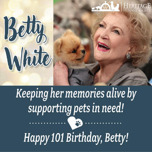 Thinking of Betty White almost instantly finds people starting to hum the sunny, catchy Golden Girls television show theme song she starred on, “Thank You for Being a Friend.” Just over a year after her passing, White’s famous passion for the protection of pets continues with a viral fundraiser that continues celebrating friendship. The Heritage Humane Society is joining in the upcoming Betty White Challenge on Jan. 17 and making it fun for community pet lovers to donate, match meal-for-meal, and even play trivia to benefit the shelter’s homeless pets.