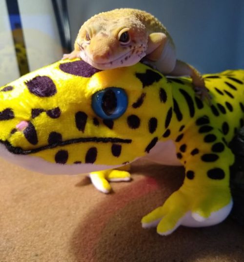 The plush version of Dash easily resembles the actual Dash. The colorful leopard gecko sports yellow skin with black spots. He likes living a tropical lifestyle preferring his balmy 85F deluxe enclosure in the administration offices when he is not taking the occasional stroll about the shelter to greet children in particular especially during Animal Camp.