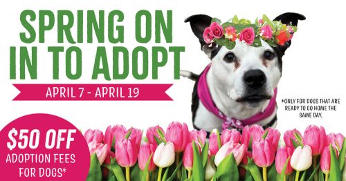 Thanks to the generosity of a donor who wishes to remain anonymous, now through Apr. 19, 2023, select adoptable dogs now have a $50 savings applied to their adoption fees for the Spring On In to Adopt promotion. Potential adopters are welcome Tuesdays – Sundays from 12 – 4:30 p.m.