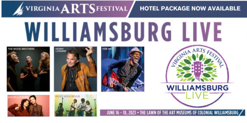 - Two passes to Williamsburg Live 2023. Hey music lovers! Get ready to get into the “Danger Zone” with two-time Grammy Award Winner Kenny Loggins (oh, hello, Top Gun theme song!), tap your toes with the “masters of soulful folk” The Wood Brothers and sing the blues with five-time Grammy Award Winner Keb’ Mo’. This auction item includes two passes for the lawn to the Virginia Art Festival’s Williamsburg Live June 16 – 18. Passes are donated by the Virginia Arts Festival.