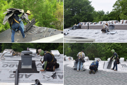 According to Derrick Worstell, Roofing Specialist with Pyramid Roofing, their team removed the old roof and worked quickly over 48 hours to replace the roof so there was minimal disturbance to the shelter pets and so the team could beat the forecasted rain. Pyramid Roofing’s professionals replaced four sheets of rotted plywood, installed more than 28,000 lbs of shingles and used more than 40,000 nails. New flashing was installed around 13 power-fan units, as well, which was a much-needed carryover.