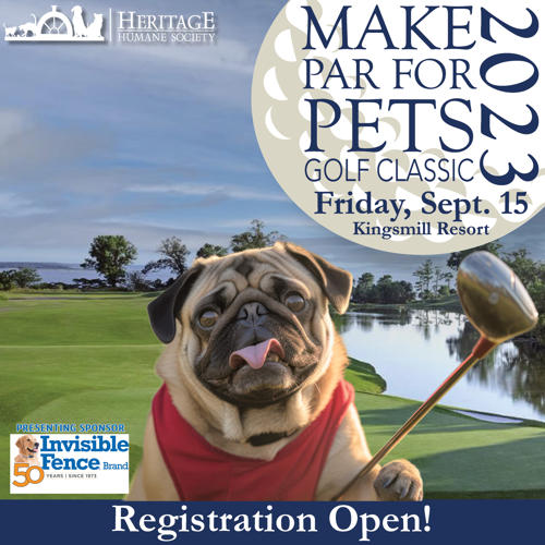 Registration and sponsorships are now open for the area’s most popular charity golf tournament, Make Par for Pets Golf Classic to benefit The Heritage Humane Society. Mark your calendar for Sept. 15, 2023 for great golf and furry friends.