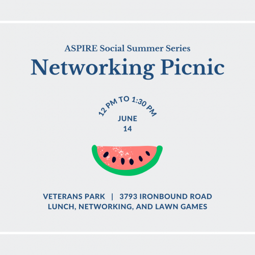The ASPIRE Young Professionals are thrilled to host the next event in their Summer Social Series, encouraging young professionals to get into the community, make new connections, and explore all that greater Williamsburg has to offer. The next event in the series invites young professionals to a Networking Picnic at Veterans Park on Wednesday, June 14th from 12 to 1:30 PM. A boxed lunch, networking, and lawn games are included. Plus, attendees will enjoy ice cream courtesy of Ben & Jerry’s Williamsburg! Register online to attend.