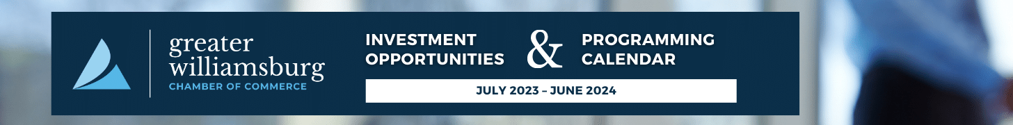 Looking to increase brand awareness? Flip through our 2023-2024 Greater Williamsburg Chamber Investment Opportunities & Program Calendar booklet.