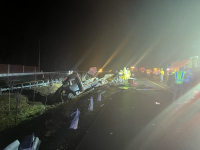 So far, the investigation has revealed that the passenger bus, traveling in the eastbound lanes of Interstate 64, merged into the tractor-trailer’s path. Police said the impact of the crash caused the tractor-trailer to run off the left side of the interstate and continue into the median where it struck an embankment.