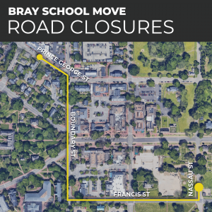The move is slated to begin at 8:30 a.m. Friday, weather permitting, and cause rolling road closures along the route, which runs from Prince George Street to Boundary Street to Francis Street to Nassau Street, according to the city.