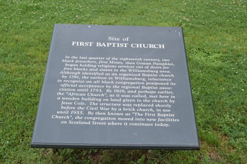 Pamphlet, who was an enslaved worker in a Williamsburg tavern, founded First Baptist Church in 1776 and secured admission of the church into the Dover Baptist Association in 1793, the same year he gained his freedom.