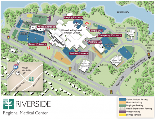 Immunization Clinical Services – Immunization client appointments for Monday, March 13, (all day) and Tuesday, March 14 (8 a.m.-noon) have been canceled. Appointments will be rescheduled. Beginning Tuesday, March 14, immunization services will be redirected to Riverside Medical Center’s Annex D Building (see map), located at 500 J Clyde Morris Blvd., Newport News, Va. 23601.