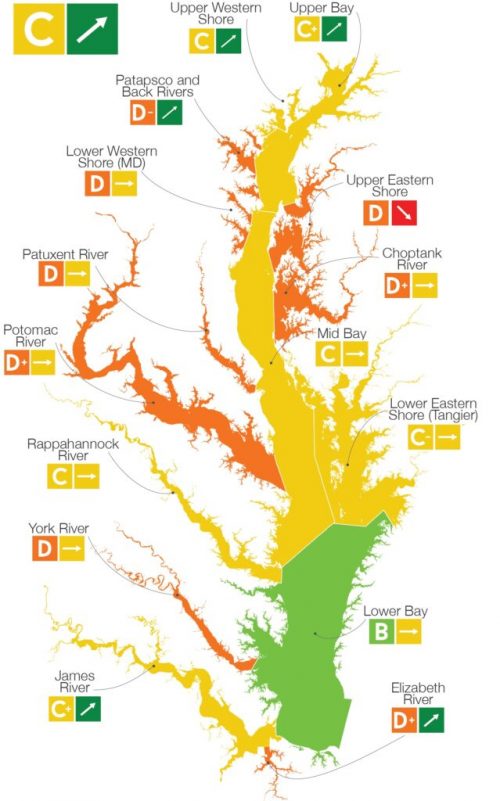 (The UMCES report card is one periodic assessment of Bay health. The Chesapeake Bay Foundation’s State of the Bay report card offered a D+ grade earlier this year.)