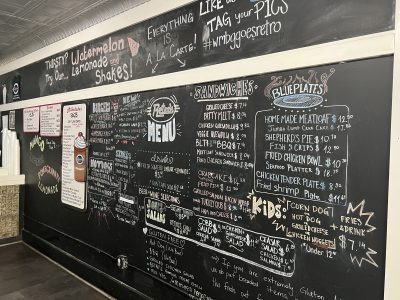 Retro’s Good Eats features hamburgers, hot dogs, chicken tenders, and milkshakes, among other things. Top sellers include crab cakes and lamb burgers.