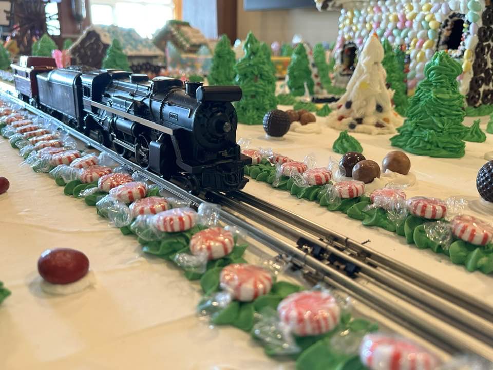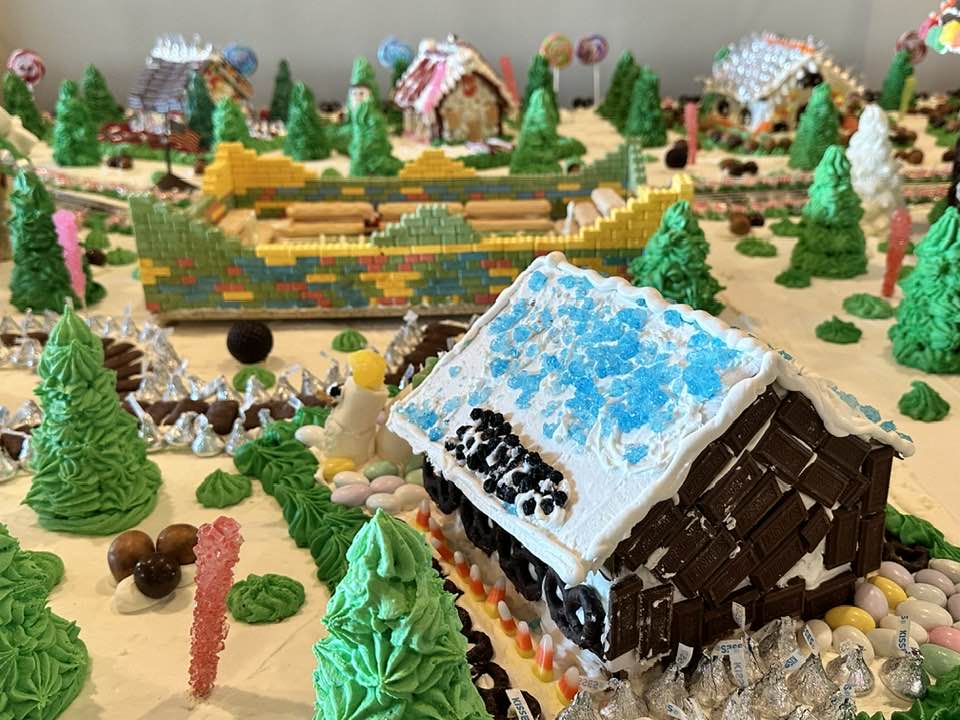 This year the edible display, aptly named Sweet Ole’ Williamsburg, was created using 1,500 pounds of powdered sugar, 500 pounds of assorted candy, 150 pounds of gingerbread and 150 man hours to create.