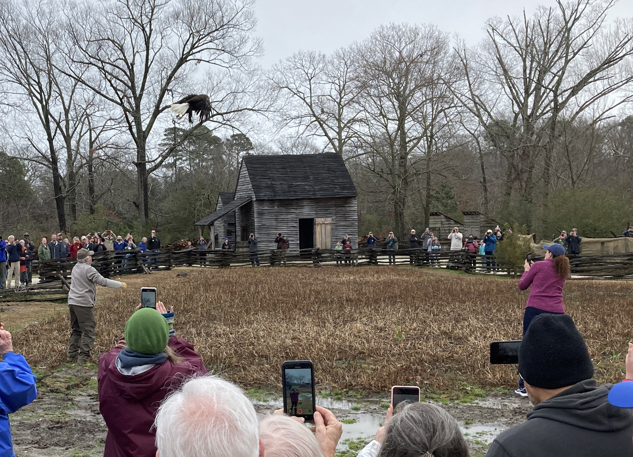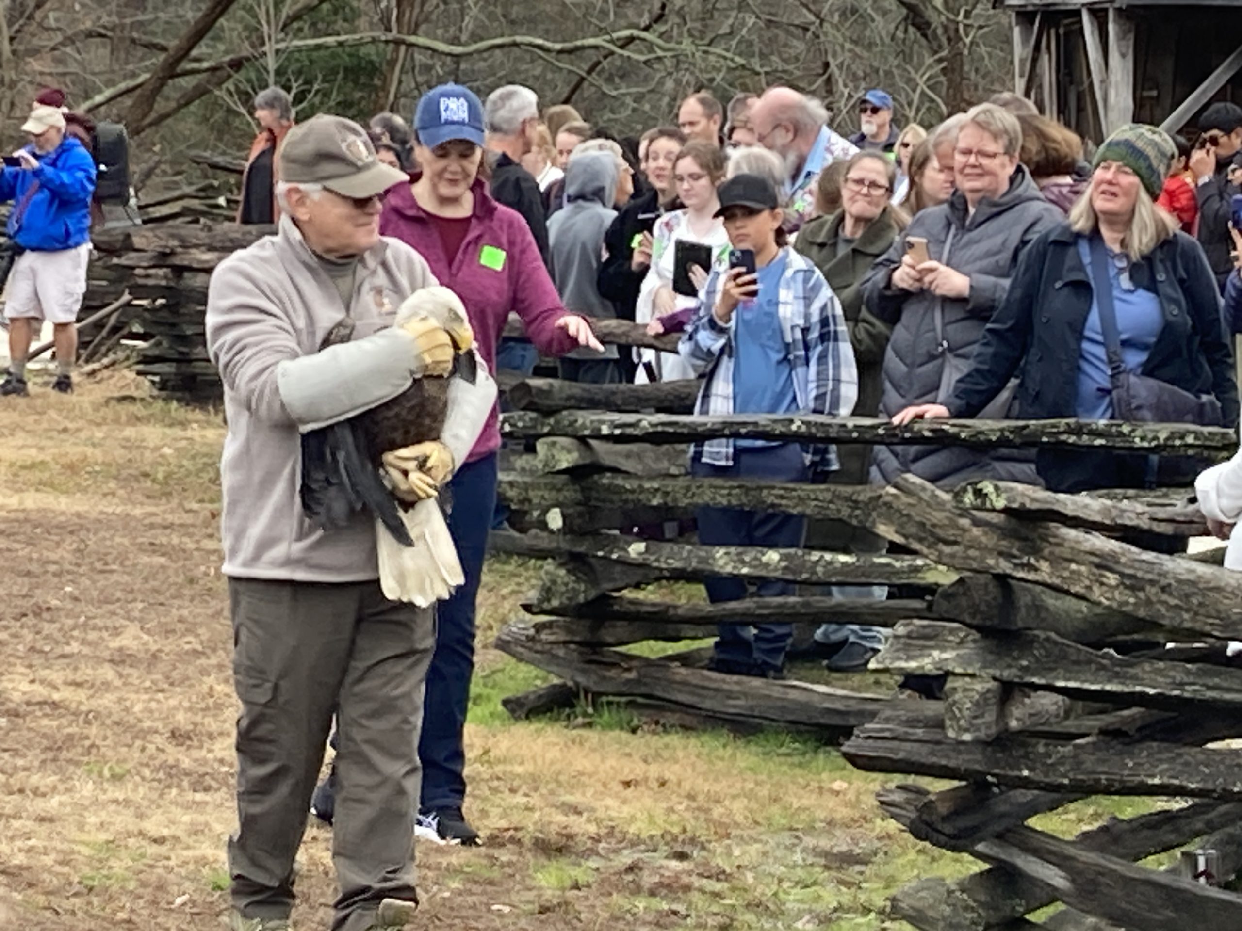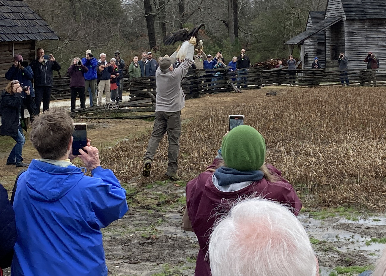 The eagle was released by the center’s president, Ed Clark. Museum staff estimated somewhere between 300 and 400 people were on hand.
