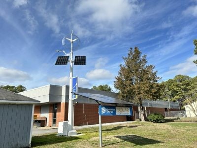 New Horizons Regional Education Center, which enrolls students from Gloucester, Hampton, James City County, Newport News, Poquoson, Williamsburg and York County, was one of two schools to receive a 30-foot tall micro wind turbine, solar panels and two 12-volt energy storage batteries.