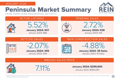 HAMPTON — Pending sales for the month of January were up from the month prior according to numbers released by the Real Estate Information Network (REIN), a multiple listing service (MLS) for the region and provider of real estate data in Hampton Roads.
