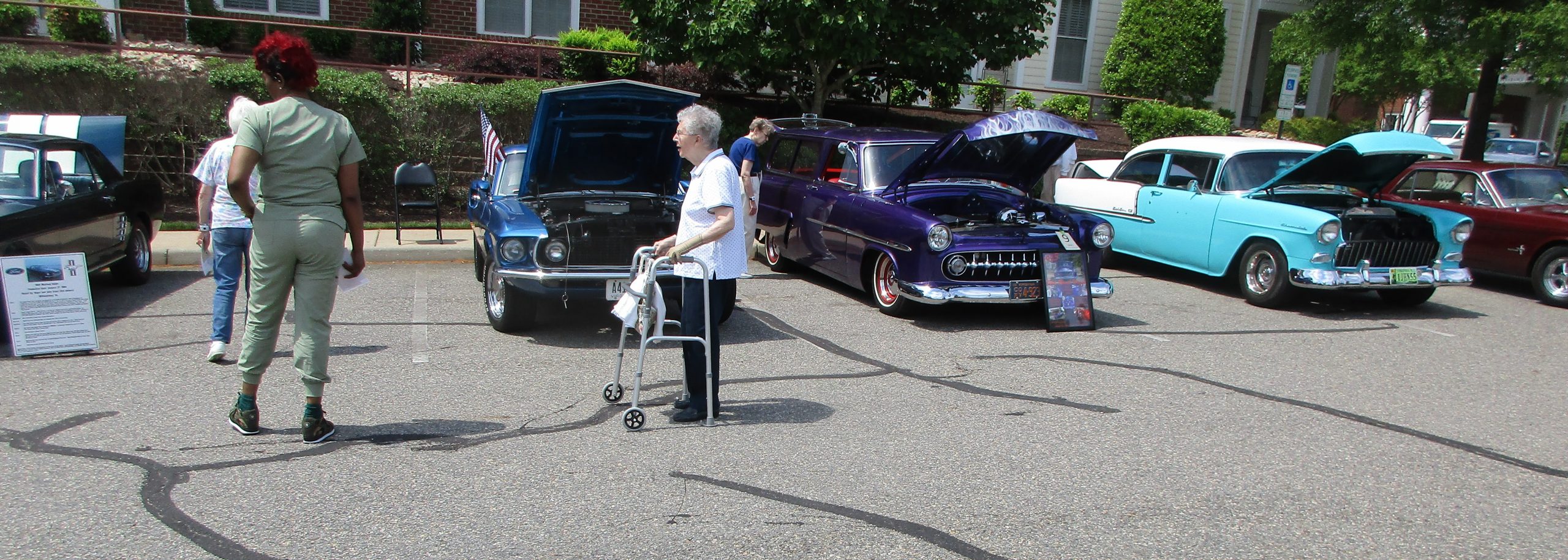 Members and friends of the Classic Cruisers Car Club-Yorktown, The Historic Virginia Peninsula Region AACA, the Colonial Virginia Model A Ford Club, and the New Kent Cruisers visited the Windsor Meade Senior Living Community in Williamsburg on a bright May Day. Tom Heldreth coordinated the visit.
