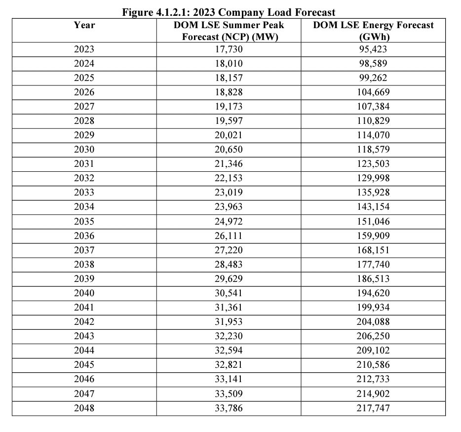 Dominion projects its load growth, which includes data centers and vehicle electrification, to increase from 17 gigawatts in 2023 to 33 gigawatt in 2048, though environmental groups are skeptical of growth proposals being modeled accurately.