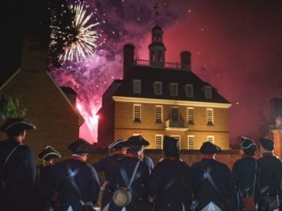 The evening concludes with a fireworks display above the Governor’s Palace sponsored by the City of Williamsburg. Fireworks last approximately 20 minutes and can be seen from Palace Green and Market Square.