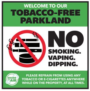 As part of its partnership with Share The Air, the department will receive free tobacco-free signage to post to remind park visitors of the policy.