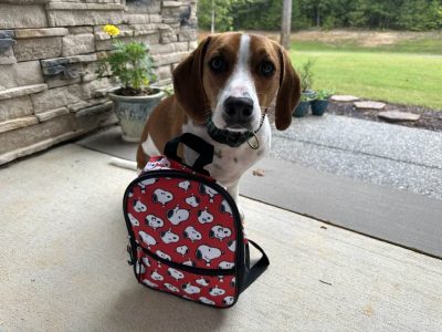 It is recommended that you have a designated area to keep backpacks up and off the floor so that your pet is not able to access what is inside. Dogs, like Ferris, love to follow their noses and become quite curious. Commonly found school items such as pencils, ink pens and glue can all be a danger to your canine.