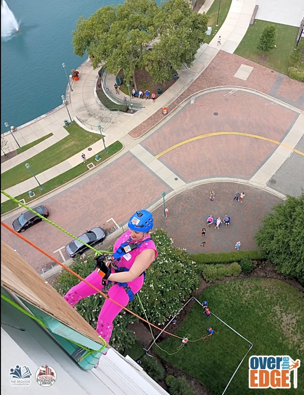 The “Over the Edge” experience was awarded to participants who raised $1000 or more to support The DeGood Foundation and its book-gifting program through Dolly Parton’s Imagination Library.