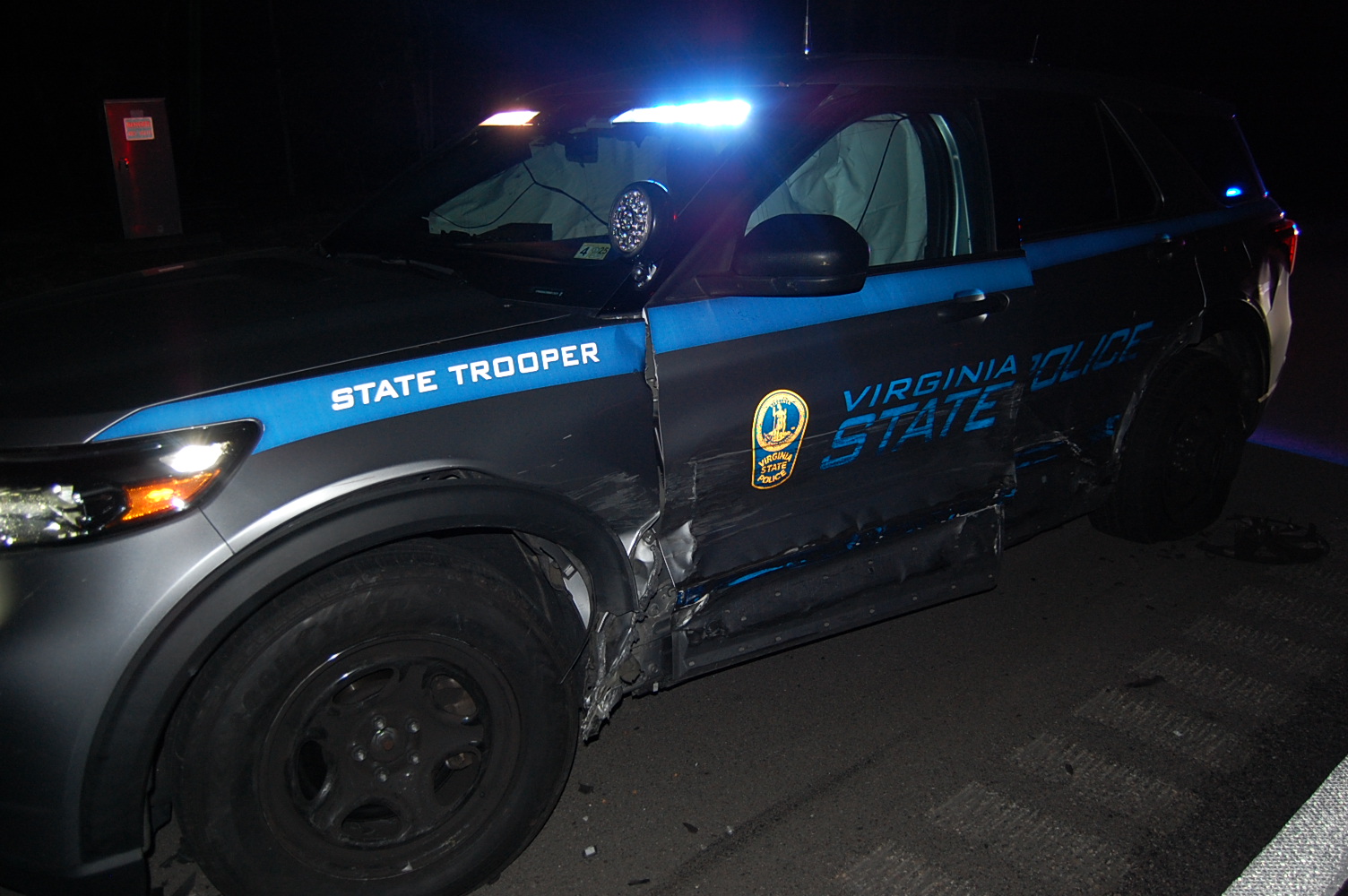 At approximately 3:13 a.m on Oct. 16, a State Trooper notified the emergency communications center he had been struck by another vehicle on Interstate 64 at mile marker 236 and that he was injured as a result of that crash, Virginia State Police (VSP) said.