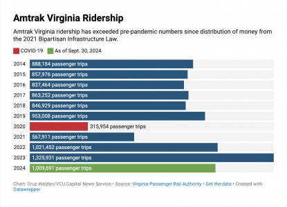 Amtrak ridership numbers have rebounded from peak-COVID years and are up from over a decade ago. President Joe Biden, avid train fan and commuter, pushed billions toward rail improvements as part of his drive to improve infrastructure. Although Biden’s administration is leaving the station, the transportation improvements are just getting underway in Virginia.