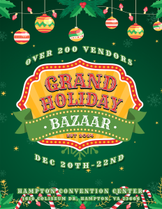 HAMPTON — Get into the holiday spirit and support local businesses at the Grand Holiday Bazaar, the largest holiday market in Hampton Roads, happening this weekend at the Hampton Roads Convention Center.