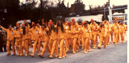 Suzy Mink, Virginia’s delegate to the 1980 torch run, was the first to carry the torch as the trek to Lake Placid got underway. The torch was designed by Don MacFarland of Santa Barbara, California, and weighed one and a half pounds. All torch bearers wear a uniform and in 1980, those uniforms were yellow tracksuits with a red stripe down the arm.