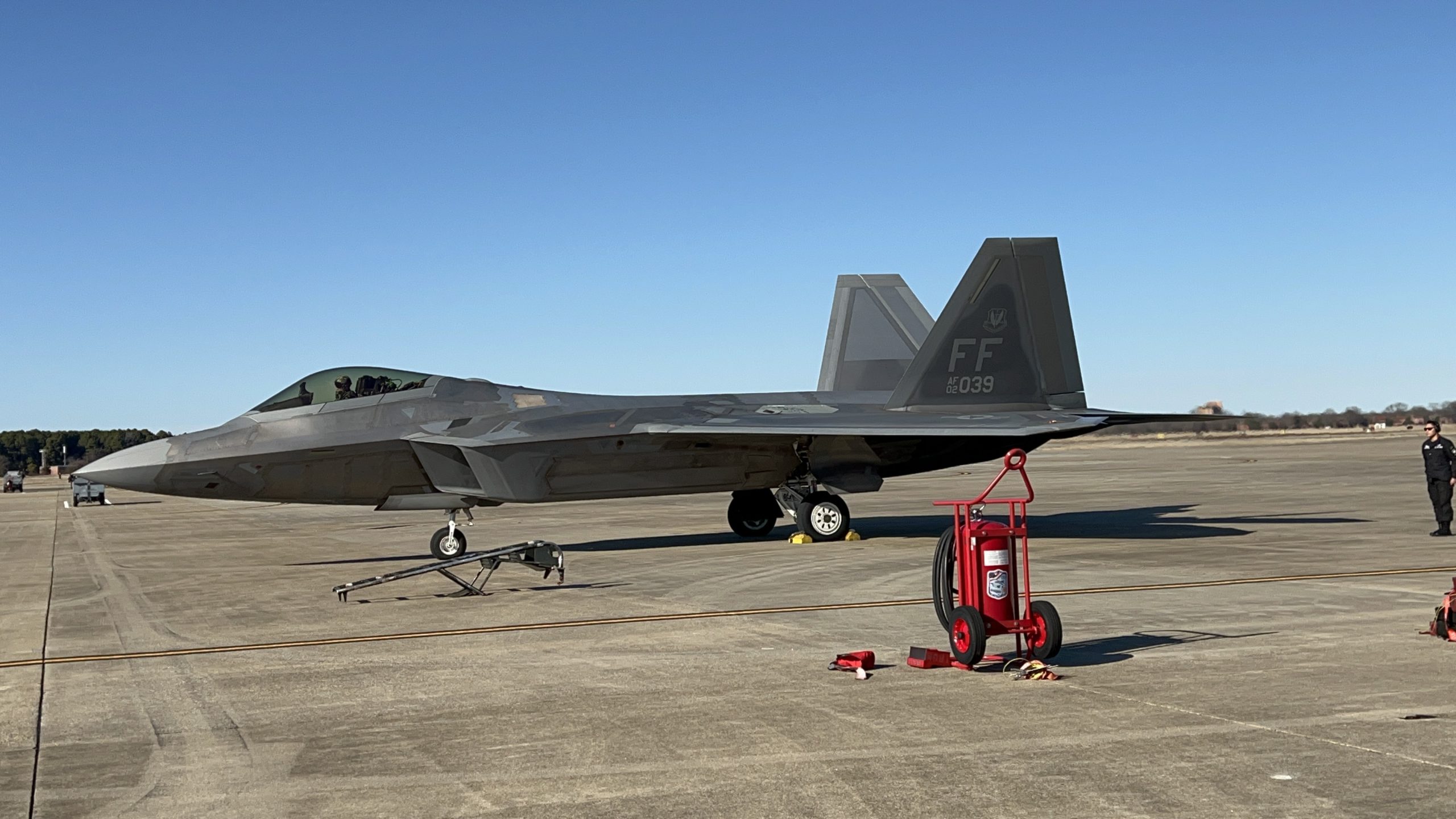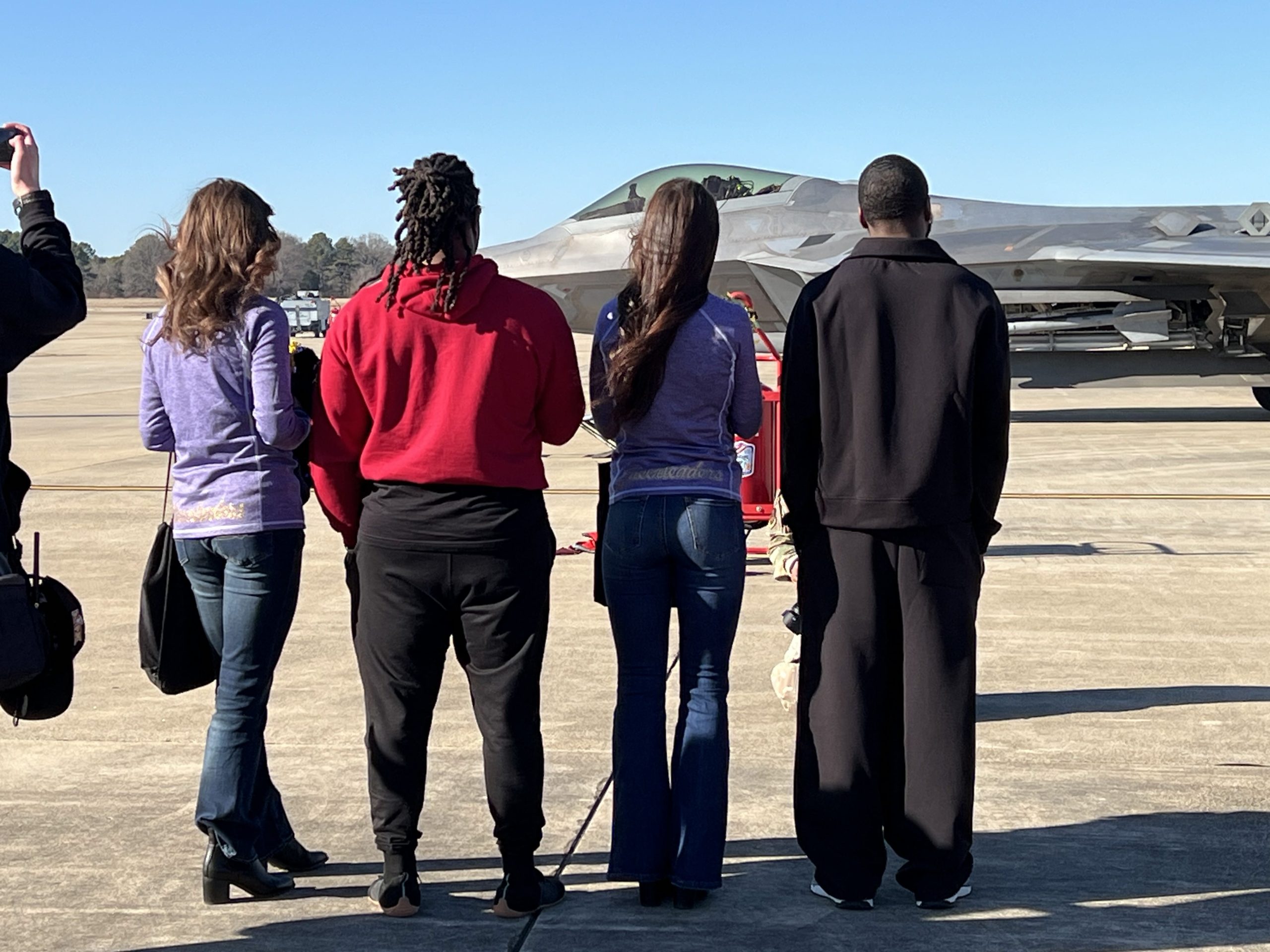 During the visit, Hawkins and Martin met with airmen and their families, watched an F-22 Raptor demonstration, and conducted a cheerleading and football clinic for kids.
