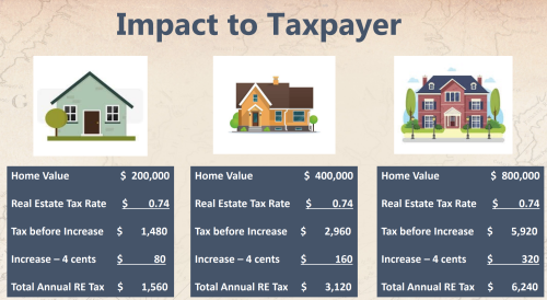 A four-cent increase in the real estate tax rate as well as a 20-cent increase in the personal property tax rate is being proposed to assist the county in closing the budget gap — an amount that could generate $6.4 million in additional revenue.