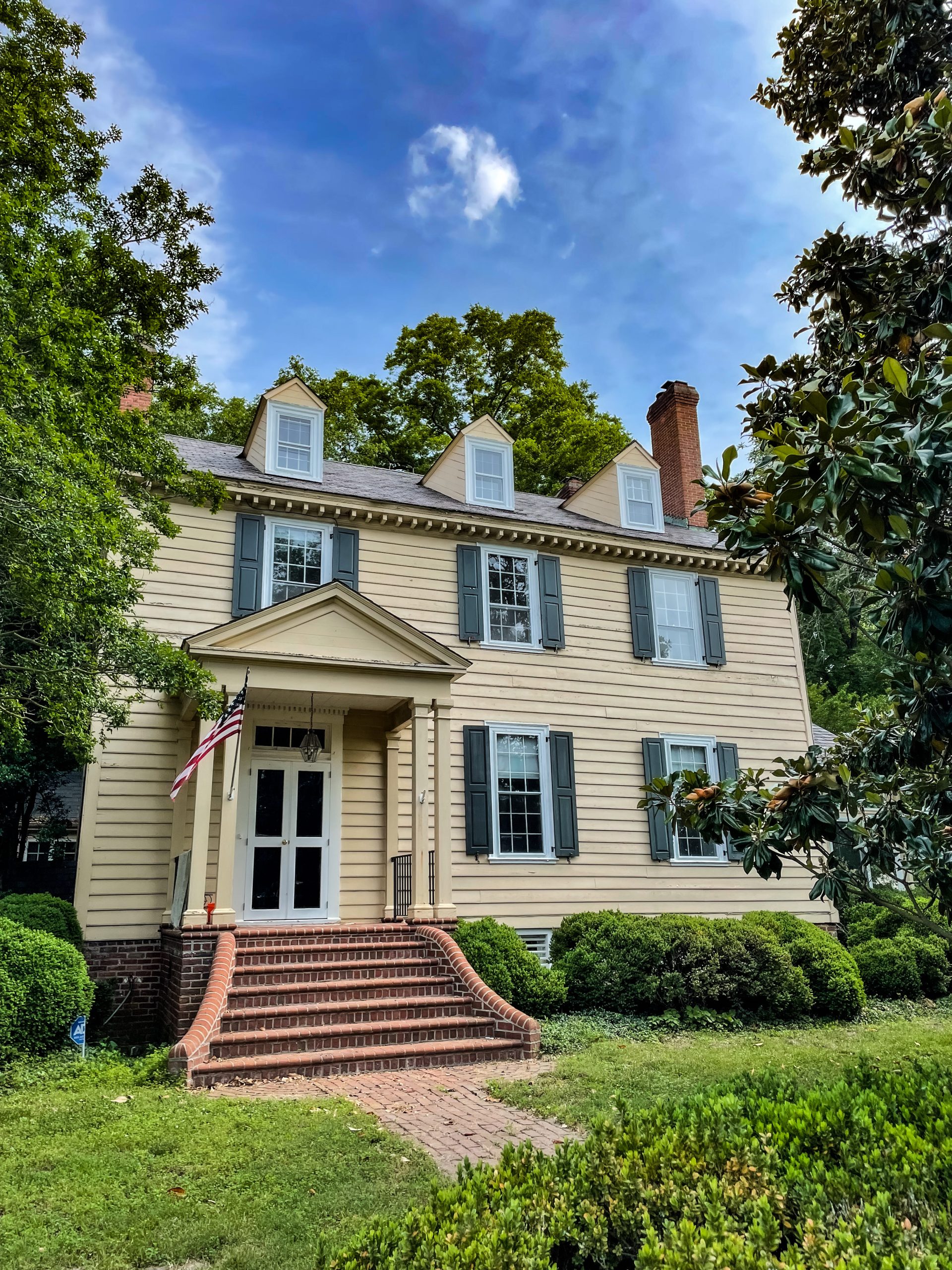 Exchange has been lived in and loved by more than twenty families since it was built in the early 18th century. Situated perpendicularly to the river, the house is two and a half stories constructed of brick overlaid with cypress beaded boarding, brick ends in Flemish bond, and dormers.