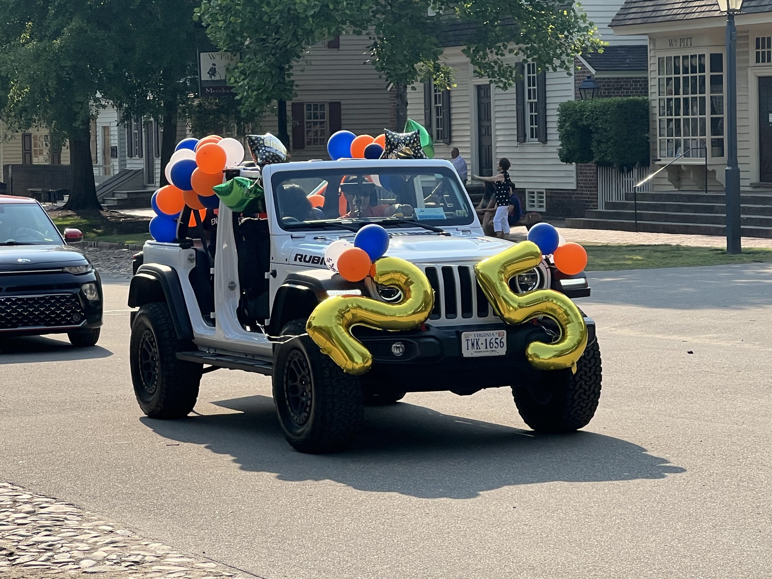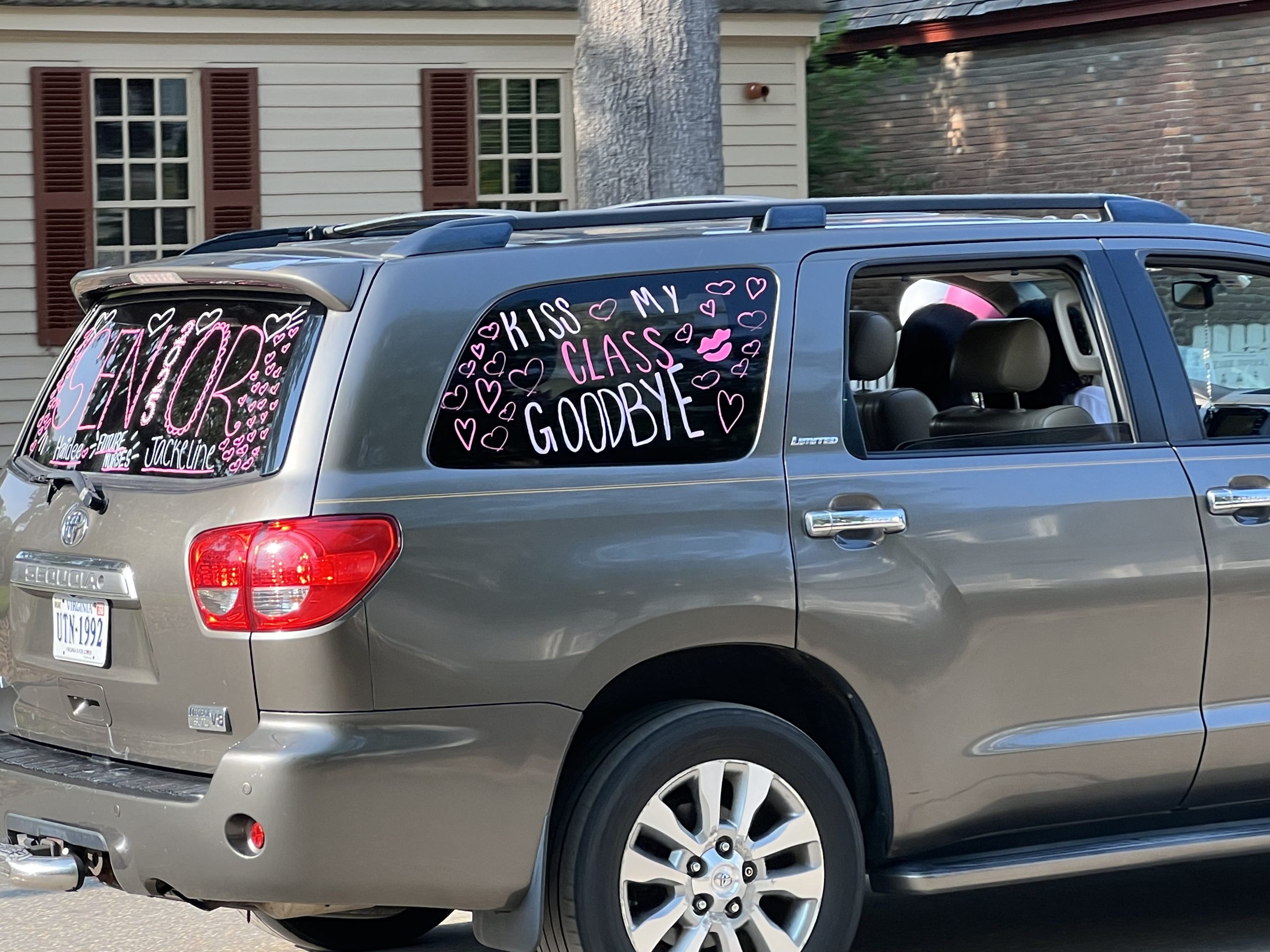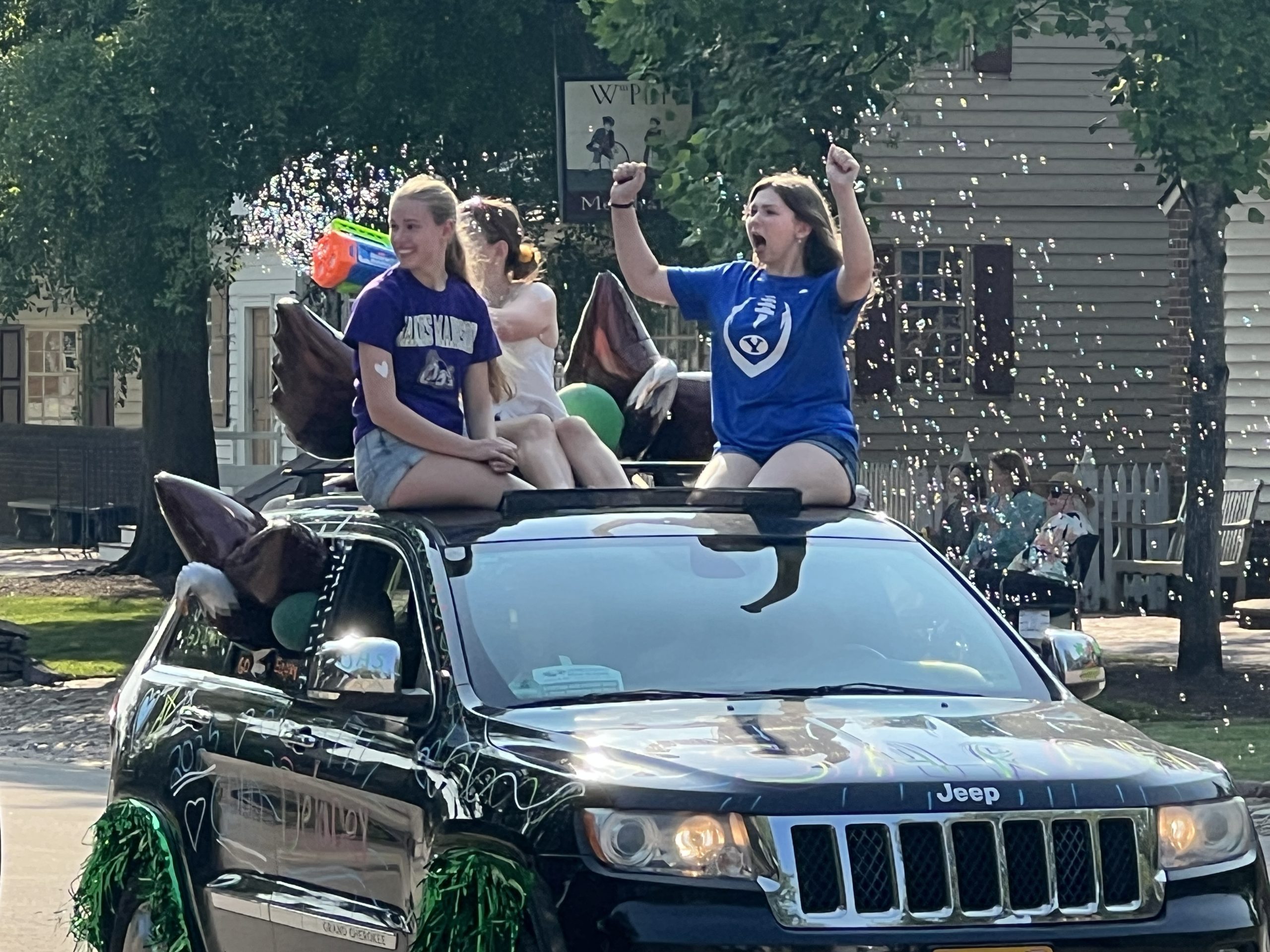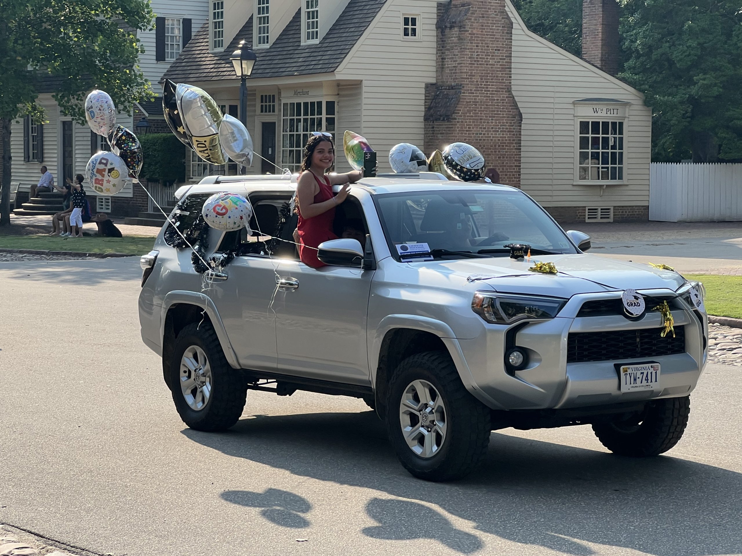 Proud families watched as students were driven down Duke of Gloucester Street in decorated cars and motorcycles. Graduating seniors were decked out in their college gear, proudly waving flags of the schools they will attend in the fall.