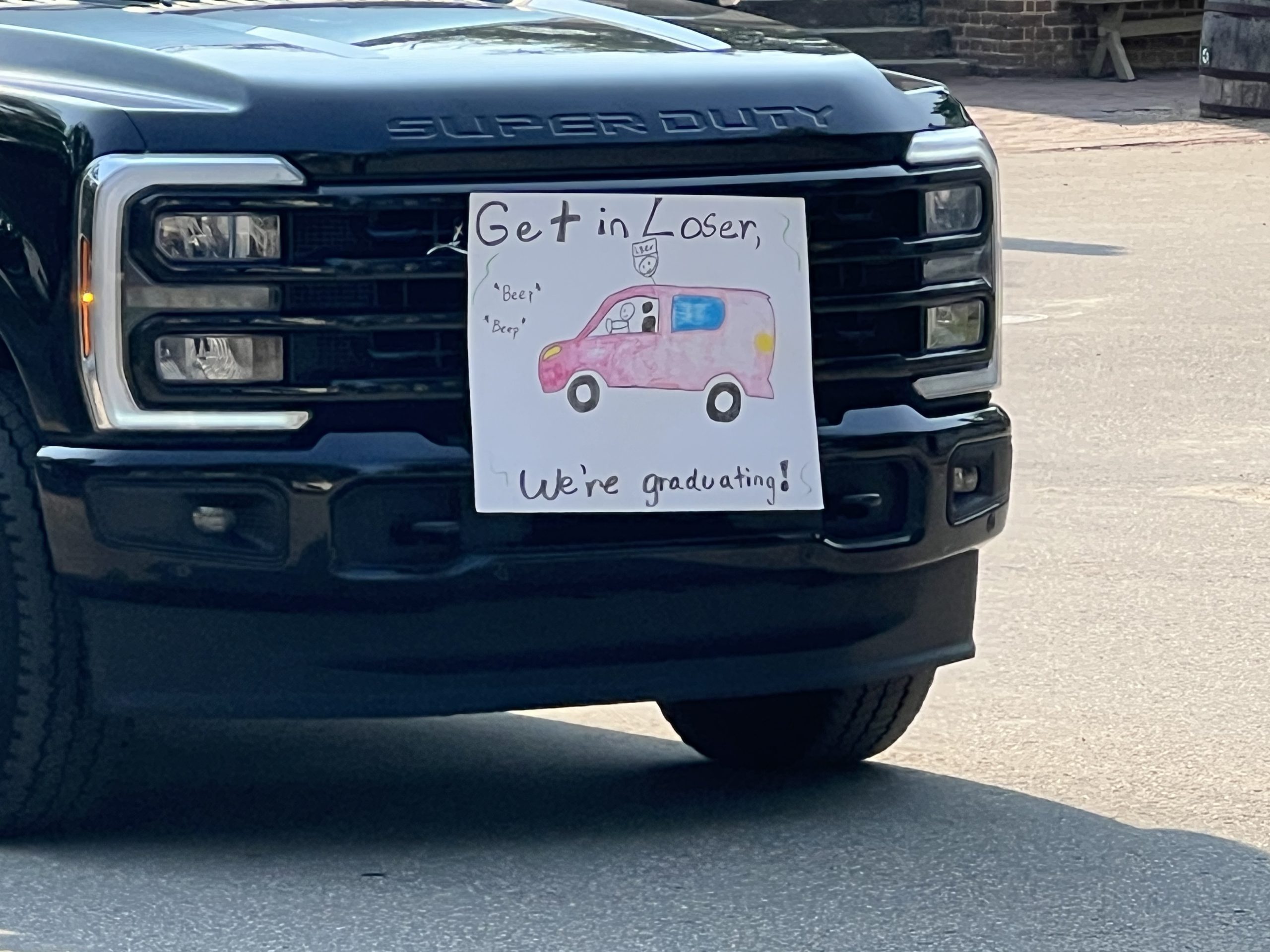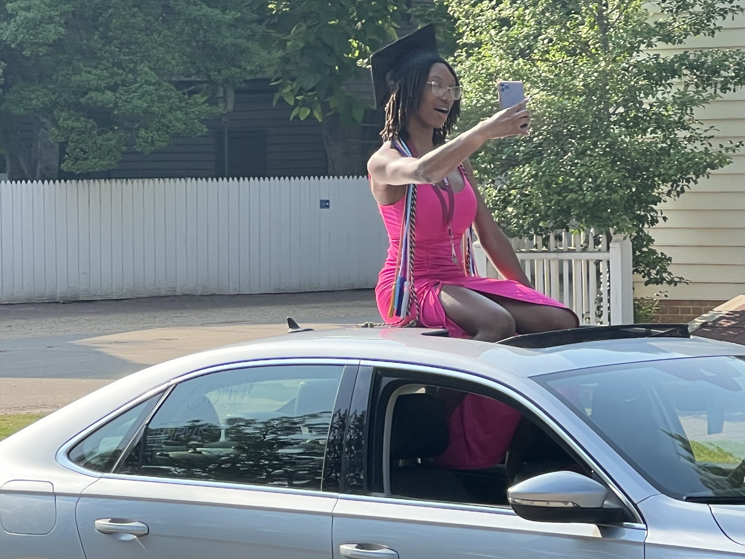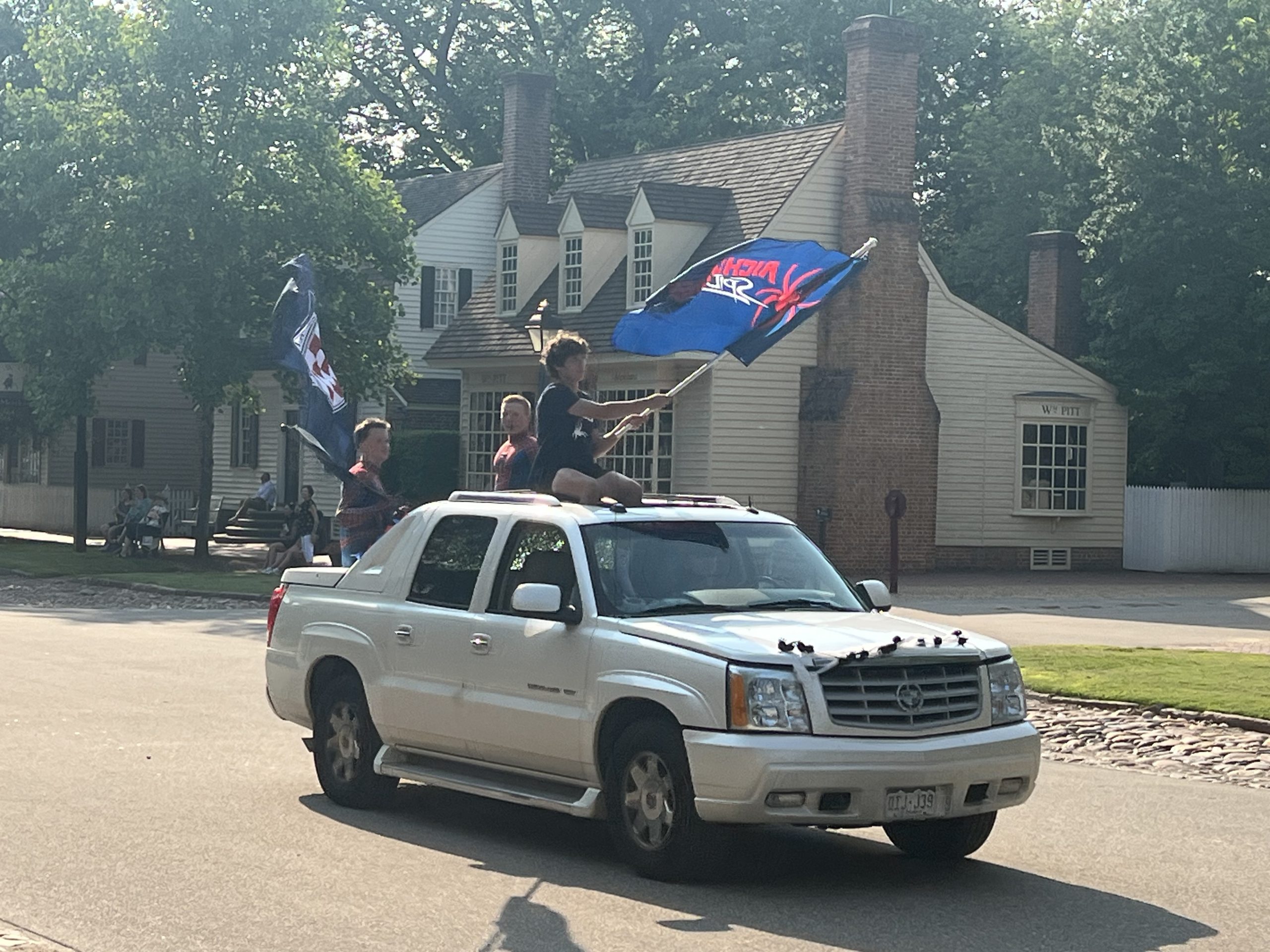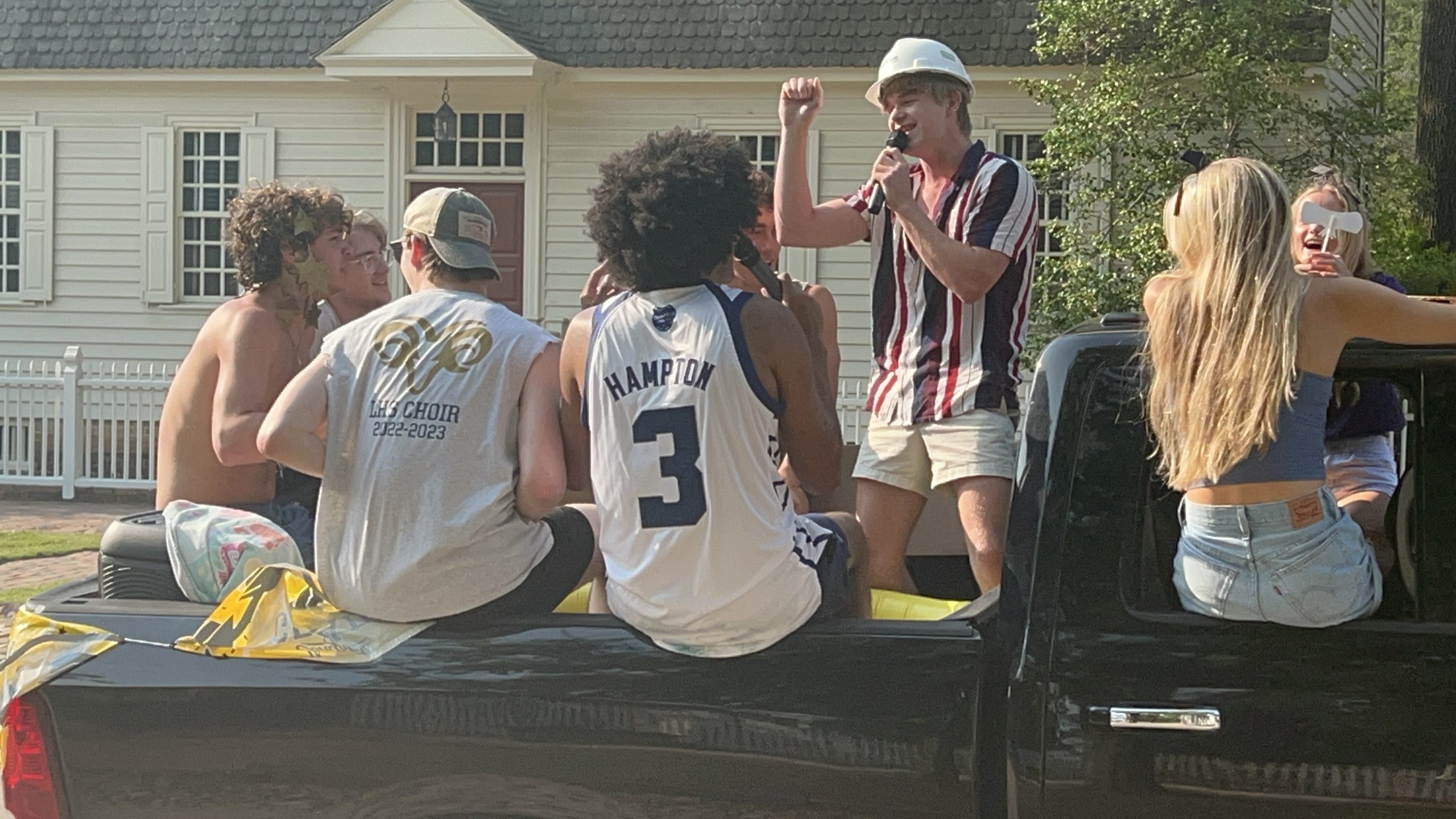 Proud families watched as students were driven down Duke of Gloucester Street in decorated cars and motorcycles. Graduating seniors were decked out in their college gear, proudly waving flags of the schools they will attend in the fall.