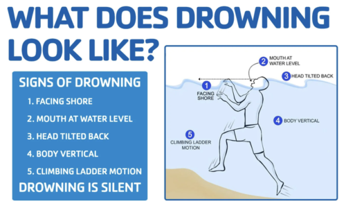Drowning often occurs quickly and silently, HPHD cautions. The signs of drowning are subtle and last only 20-60 seconds before the person goes under.