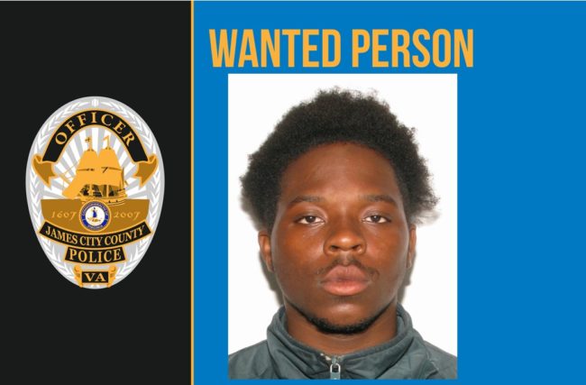 JAMES CITY COUNTY — The James City County Police Department (JCCPD) is asking for the public’s assistance in locating a wanted person.
