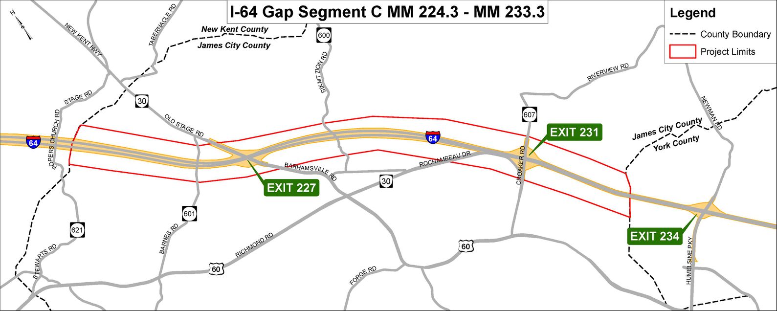 The I-64 Gap Segment C Widening Project is estimated to be completed as early as late 2027.