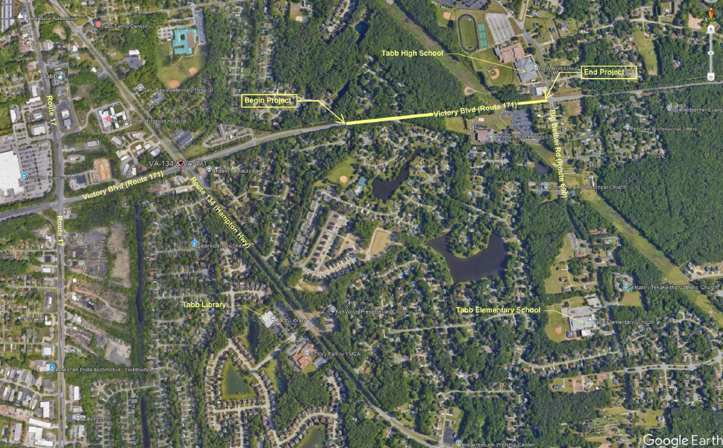 The project aims to improve capacity and mobility on Victory Boulevard (Route 171) from east of Bowman Terrace to Big Bethel Road (Route 600).