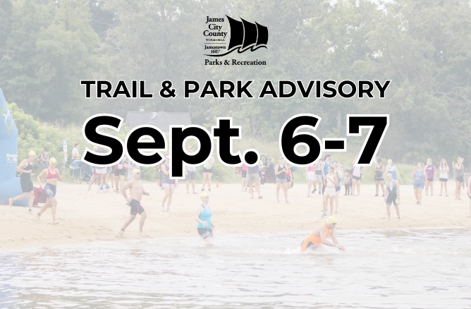 Several county parks and trails will be impacted by the event, the county said. The cycling, running and swimming events will be held at Jamestown Beach Event Park, along Greensprings Interpretive Trail, Powhatan Creek Trail and the Virginia Capital Trail from 7 a.m. to 4 p.m. on Saturday and 7 a.m. to 1 p.m. on Sunday.