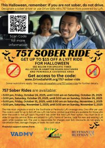 HAMPTON ROADS — Drive Safe Hampton Roads announced it is sponsoring four 757 Sober Ride opportunities for Halloween.